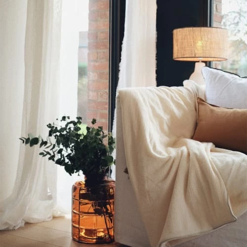 Son coloris écru apportera une touche de douceur dans votre intérieur, que ce soit dans le salon posée sur le canapé, ou dans la chambre en jeté de lit. Un vrai élément de déco qui vous fera craquer grâce à son liseré doré.