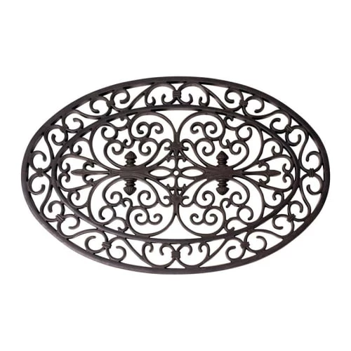 Ce tapis au design intemporel sera un atout pour votre entrée. Ce paillasson en caoutchouc ovale au design victorien convient pour une utilisation intérieure et extérieure. Son fond ouvert assure un bon drainage des liquides et des saletés. Il est pratique pour votre entrée mais également dans les endroits où le sol est souvent mouillé. Caractéristiques : – Facile à nettoyer – Robuste – Antidérapant – Dimensions : L 44,3 x l 69,5 x H 1,4 cm