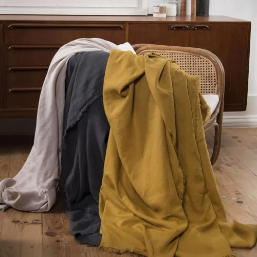 Matière naturelle et authentique, le lin lavé est élégant et délicat, pour un intérieur au caractère naturel et épuré. Facile à vivre et à s’approprier, notre collection Hortense se distingue surtout par son toucher aérien et vaporeux, à la fois raffinée et décontractée. Notre plaid Hortense est légèrement froissé lavé pour plus de douceur et prélavé pour éviter qu’il ne rétrécisse, ne perde sa forme ou ne se décolore après l’achat. Il s’assouplit et s’embellit au fil du temps et des lavages. Sur un canapé trop sage, il devient une pièce de décoration à part entière et vous réchauffe tout en restant esthétique.