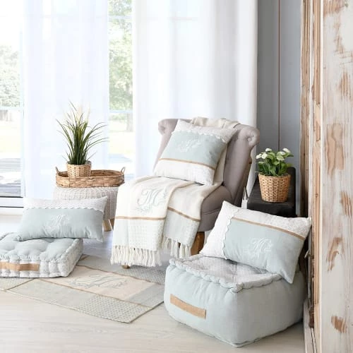 Home Maison Matelas Et Coussins De Sol Coussin De Sol Uni En Pur Coton Coton Naturel 50 X 50