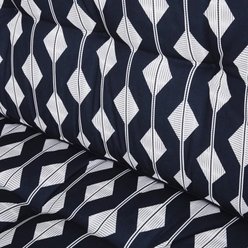 Vous recherchez un matelas qui se fondrait dans votre décoration ethnique ? N’hésitez plus, tentez le matelas palette en coton motifs triangles écrus et noirs ADEM , une création originale ! Vous vous assoupirez aux côtés de jolis losanges inspirés d’ailleurs, qui vous emporteront vers des contrées lointaines…