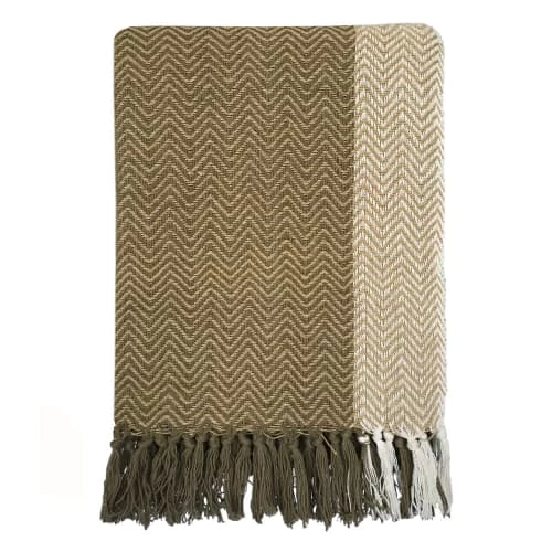 Maisons Du Monde Plaids Plaid Tissé En Coton Recyclé Détail Franges Jaune, écru Et Beige 160×210