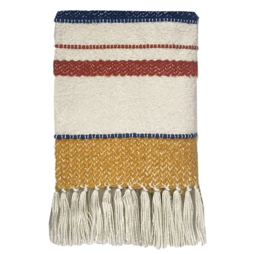 Maisons Du Monde Plaids Plaid Tissé En Coton Recyclé Détail Franges Jaune, écru Et Beige 160×210