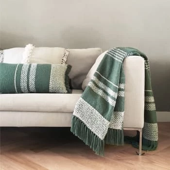 Maisons Du Monde Plaids Plaid Tissé En Coton Recyclé Détail Franges Jaune, écru Et Beige 160×210