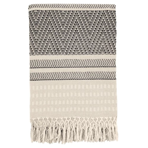 Maisons Du Monde Plaids Plaid Tissé En Coton Recyclé Détail Franges Jaune, écru Et Beige 160×210