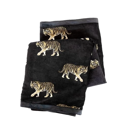 matière : Velours d’ameublement de qualité supérieure – 100% polyester avec ses tigres brodés en fil d’or – Doublure velours noir