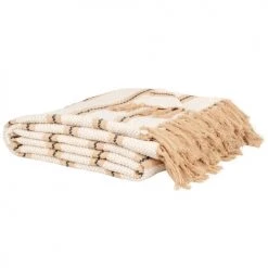 Maisons Du Monde Plaids Plaid Tissé En Coton Recyclé Détail Franges Jaune, écru Et Beige 160×210