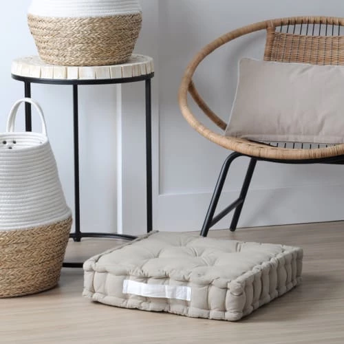 Home Maison Matelas Et Coussins De Sol Coussin De Sol Uni En Pur Coton Coton Naturel 50 X 50
