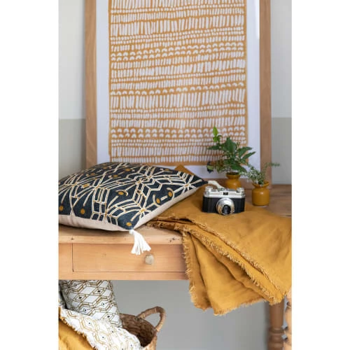 Maisons Du Monde Plaids Plaid Tissé En Coton Recyclé Détail Franges Jaune, écru Et Beige 160×210